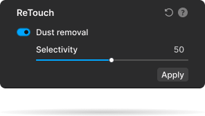 Photographers can adjust the cleaning threshold for total control, while automation removes the need for tedious manual retouching, delivering flawless results and a faster, cleaner workflow.